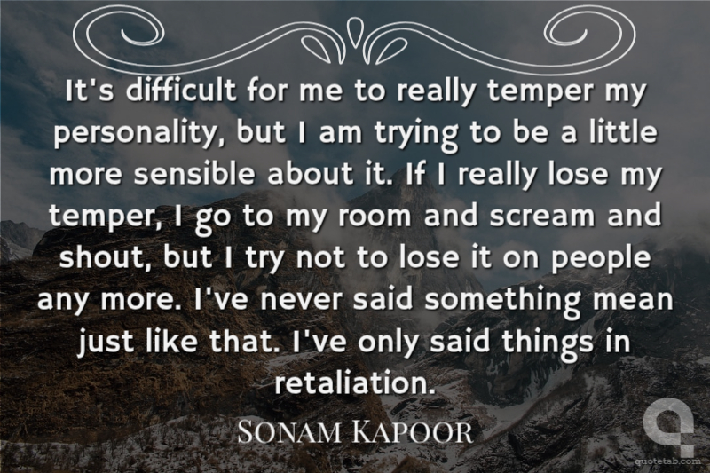 It's difficult for me to really temper my personality, but I am trying to be a little more sensible about it. If I really lose my temper, I go to my room and scream and shout, but I try not to lose it on people any more. I've never said something mean just like that. I've only said things in retaliation.