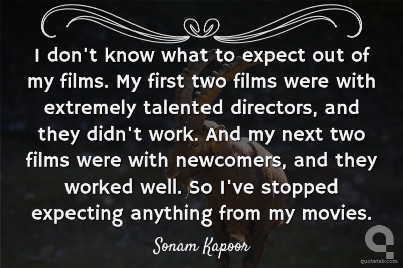 I don't know what to expect out of my films. My first two films were with extremely talented directors, and they didn't work. And my next two films were with newcomers, and they worked well. So I've stopped expecting anything from my movies.
