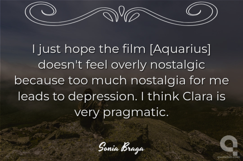 I just hope the film [Aquarius] doesn't feel overly nostalgic because too much nostalgia for me leads to depression. I think Clara is very pragmatic.