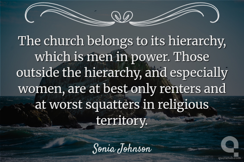 The church belongs to its hierarchy, which is men in power. Those outside the hierarchy, and especially women, are at best only renters and at worst squatters in religious territory.
