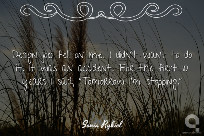 Design job fell on me. I didn't want to do it. It was an accident. For the first 10 years I said, "Tomorrow I'm stopping."