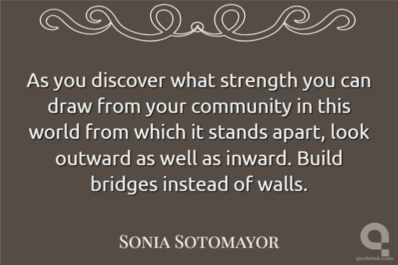 As you discover what strength you can draw from your community in this world from which it stands apart, look outward as well as inward. Build bridges instead of walls.