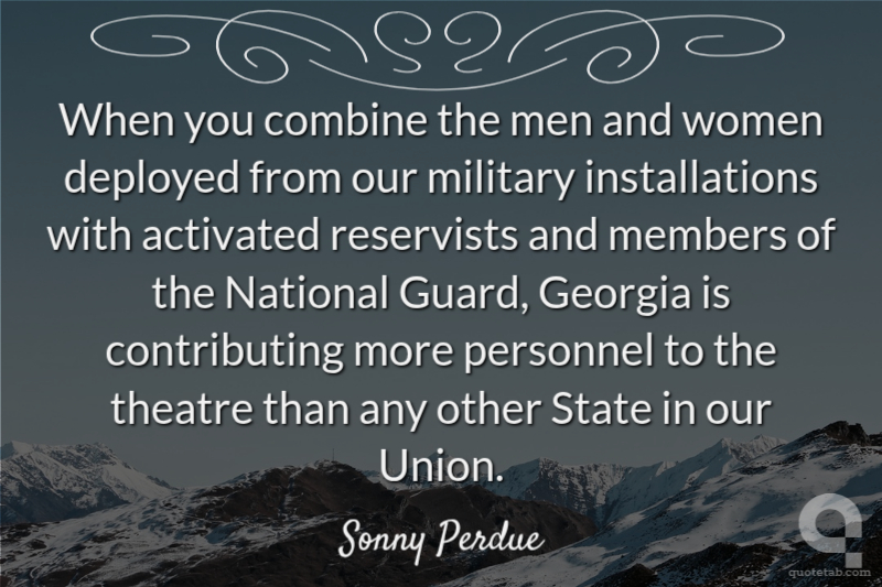 When you combine the men and women deployed from our military installations with activated reservists and members of the National Guard, Georgia is contributing more personnel to the theatre than any other State in our Union.