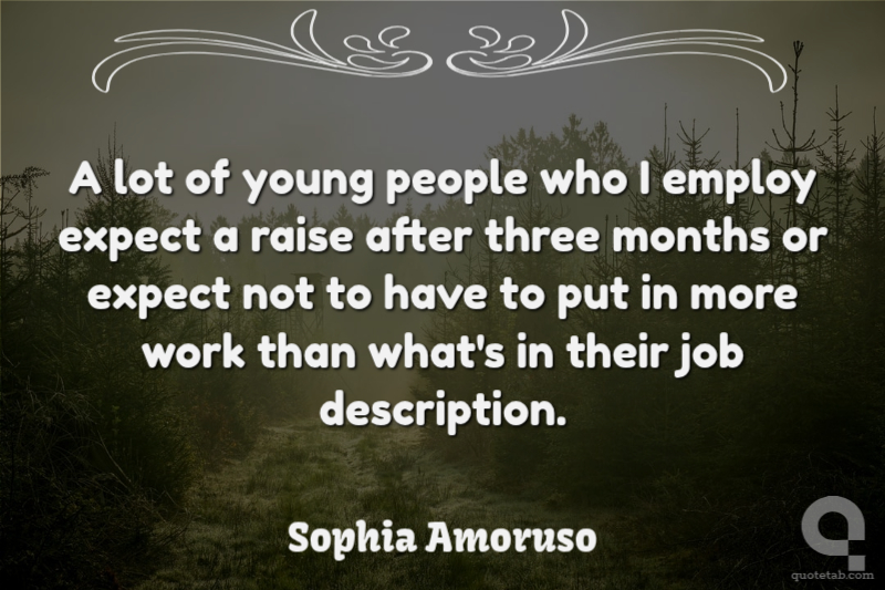 A lot of young people who I employ expect a raise after three months or expect not to have to put in more work than what's in their job description.