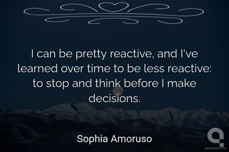 I can be pretty reactive, and I've learned over time to be less reactive: to stop and think before I make decisions.