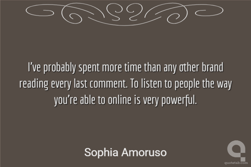 I've probably spent more time than any other brand reading every last comment. To listen to people the way you're able to online is very powerful.