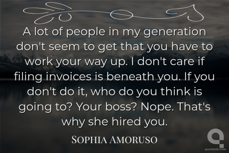A lot of people in my generation don't seem to get that you have to work your way up. I don't care if filing invoices is beneath you. If you don't do it, who do you think is going to? Your boss? Nope. That's why she hired you.