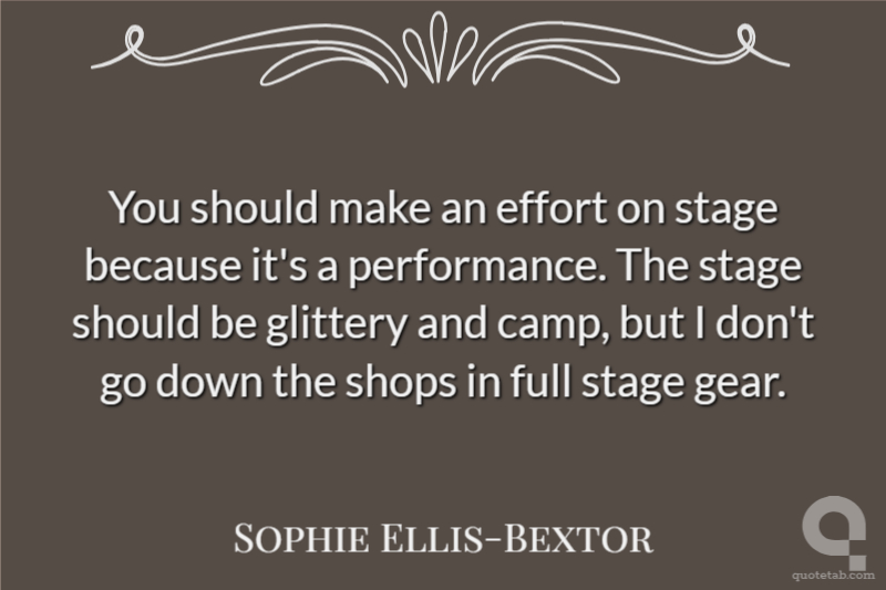 You should make an effort on stage because it's a performance. The stage should be glittery and camp, but I don't go down the shops in full stage gear.