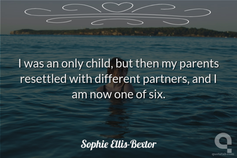 I was an only child, but then my parents resettled with different partners, and I am now one of six.