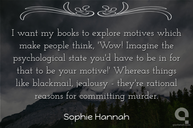 I want my books to explore motives which make people think, 'Wow! Imagine the psychological state you'd have to be in for that to be your motive!' Whereas things like blackmail, jealousy - they're rational reasons for committing murder.
