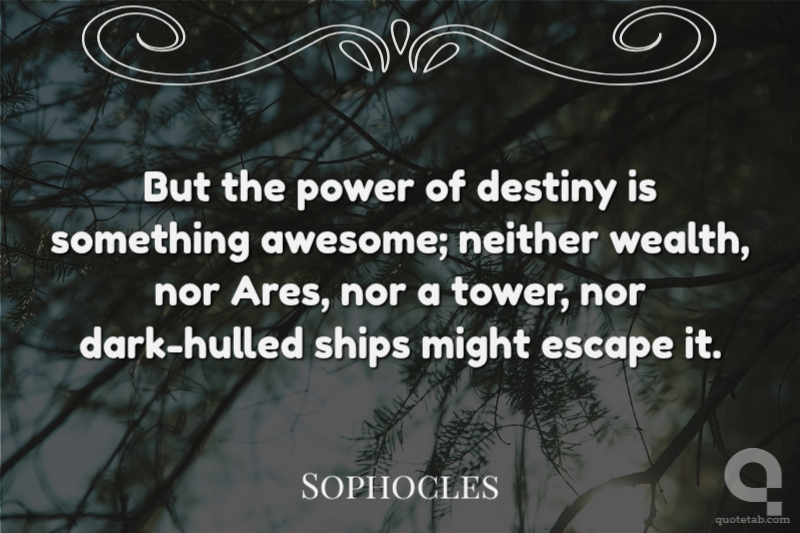 But the power of destiny is something awesome; neither wealth, nor Ares, nor a tower, nor dark-hulled ships might escape it.