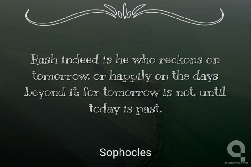 Rash indeed is he who reckons on tomorrow, or happily on the days beyond it; for tomorrow is not, until today is past.