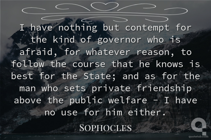 I have nothing but contempt for the kind of governor who is afraid, for whatever reason, to follow the course that he knows is best for the State; and as for the man who sets private friendship above the public welfare - I have no use for him either.