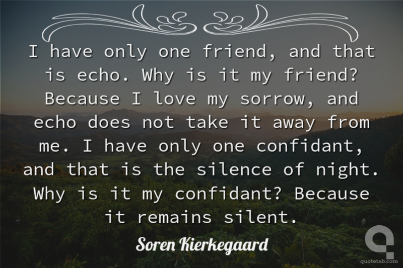 I have only one friend, and that is echo. Why is it my friend? Because I love my sorrow, and echo does not take it away from me. I have only one confidant, and that is the silence of night. Why is it my confidant? Because it remains silent.