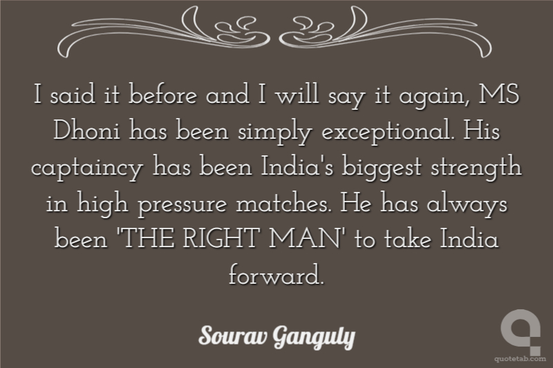 I said it before and I will say it again, MS Dhoni has been simply exceptional. His captaincy has been India's biggest strength in high pressure matches. He has always been 'THE RIGHT MAN' to take India forward.