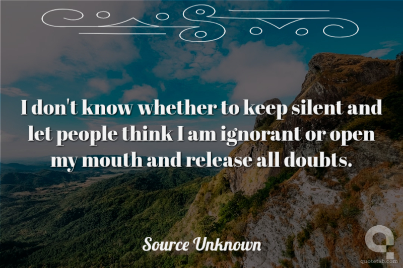 I don't know whether to keep silent and let people think I am ignorant or open my mouth and release all doubts.