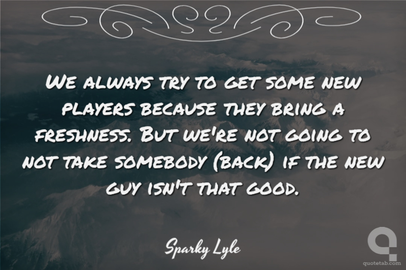 We always try to get some new players because they bring a freshness. But we're not going to not take somebody (back) if the new guy isn't that good.