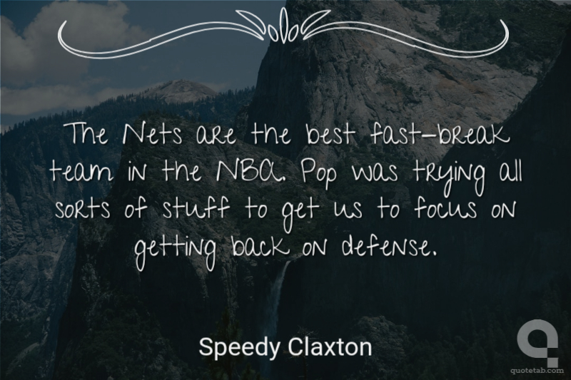 The Nets are the best fast-break team in the NBA. Pop was trying all sorts of stuff to get us to focus on getting back on defense.