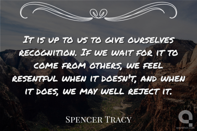 It is up to us to give ourselves recognition. If we wait for it to come from others, we feel resentful when it doesn't, and when it does, we may well reject it.