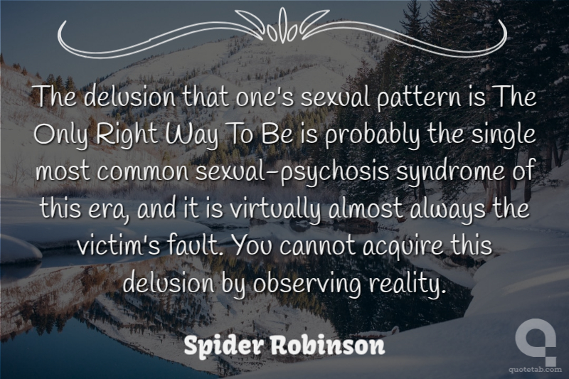 The delusion that one's sexual pattern is The Only Right Way To Be is probably the single most common sexual-psychosis syndrome of this era, and it is virtually almost always the victim's fault. You cannot acquire this delusion by observing reality.