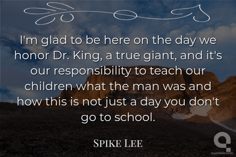 I'm glad to be here on the day we honor Dr. King, a true giant, and it's our responsibility to teach our children what the man was and how this is not just a day you don't go to school.