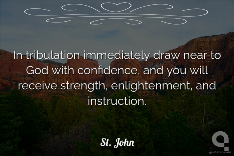 In tribulation immediately draw near to God with confidence, and you will receive strength, enlightenment, and instruction.