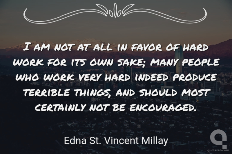 I am not at all in favor of hard work for its own sake; many people who work very hard indeed produce terrible things, and should most certainly not be encouraged.