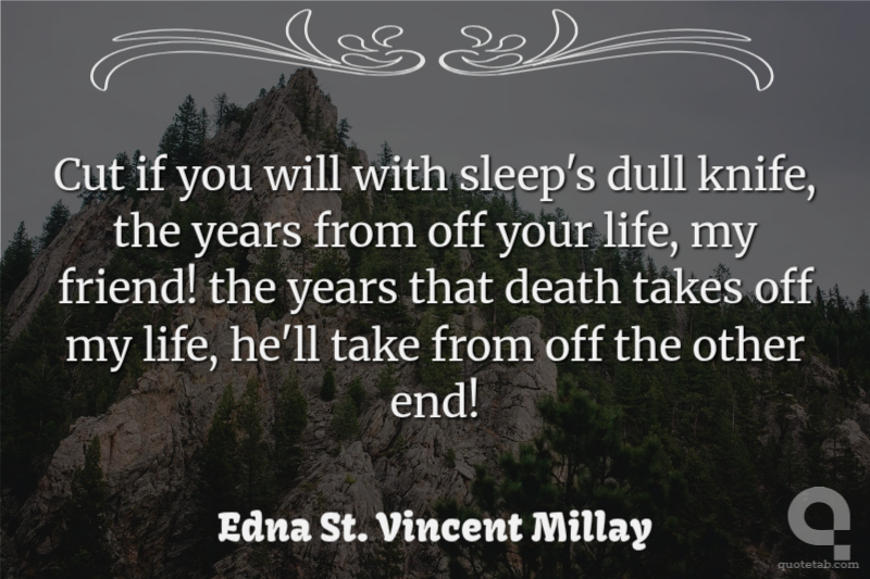 Cut if you will with sleep's dull knife, the years from off your life, my friend! the years that death takes off my life, he'll take from off the other end!