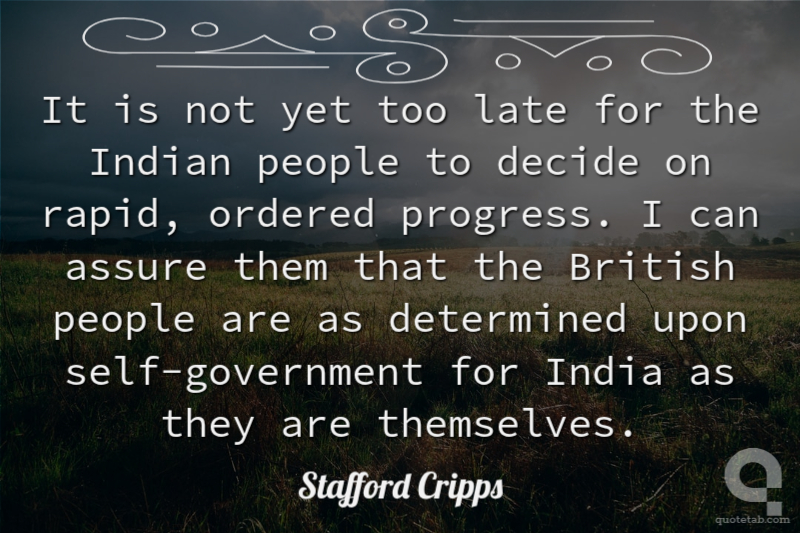 It is not yet too late for the Indian people to decide on rapid, ordered progress. I can assure them that the British people are as determined upon self-government for India as they are themselves.