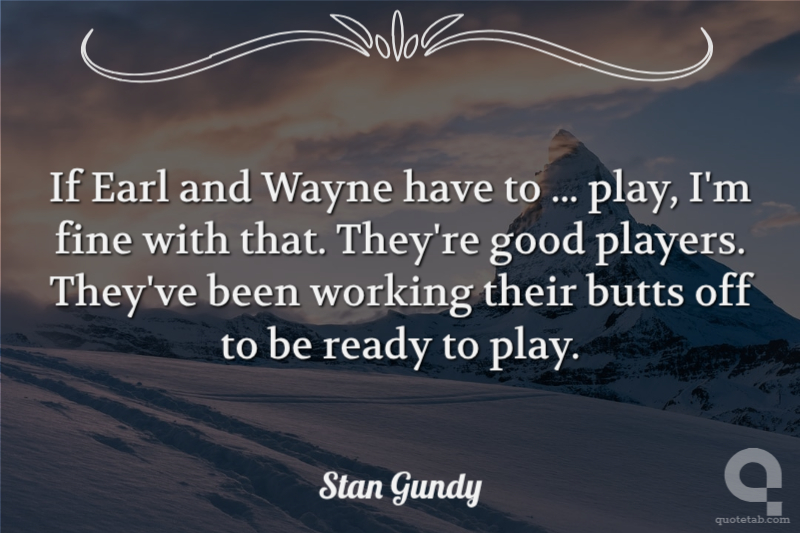 If Earl and Wayne have to ... play, I'm fine with that. They're good players. They've been working their butts off to be ready to play.