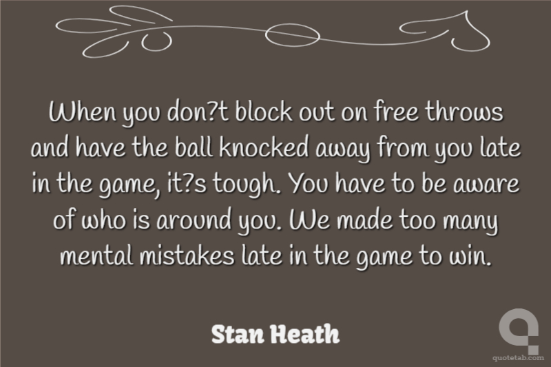 When you don?t block out on free throws and have the ball knocked away from you late in the game, it?s tough. You have to be aware of who is around you. We made too many mental mistakes late in the game to win.
