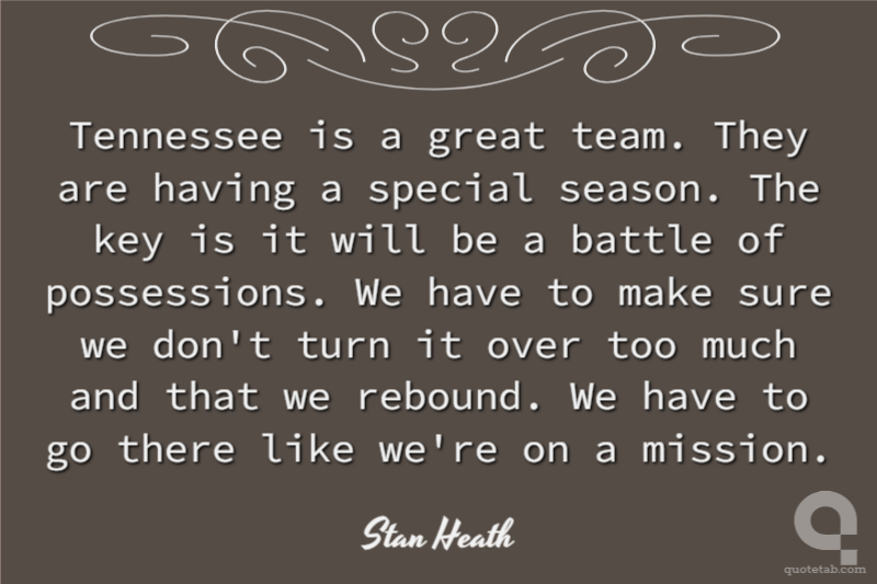 Tennessee is a great team. They are having a special season. The key is it will be a battle of possessions. We have to make sure we don't turn it over too much and that we rebound. We have to go there like we're on a mission.