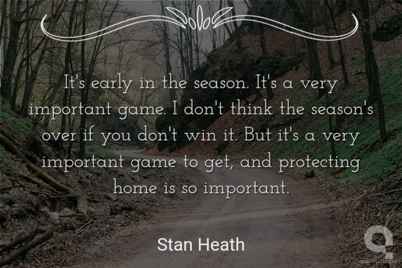 It's early in the season. It's a very important game. I don't think the season's over if you don't win it. But it's a very important game to get, and protecting home is so important.