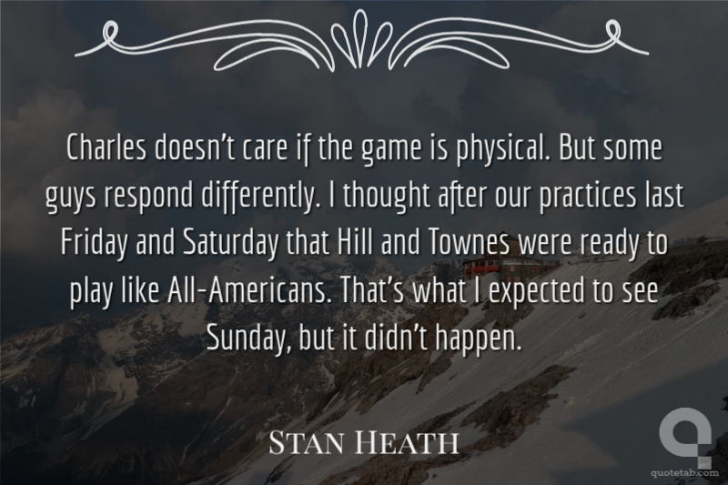 Charles doesn't care if the game is physical. But some guys respond differently. I thought after our practices last Friday and Saturday that Hill and Townes were ready to play like All-Americans. That's what I expected to see Sunday, but it didn't happen.
