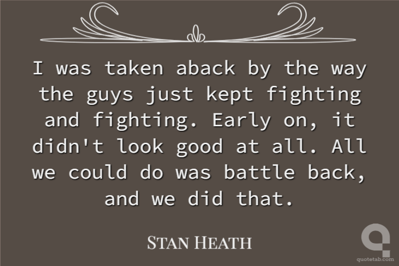 I was taken aback by the way the guys just kept fighting and fighting. Early on, it didn't look good at all. All we could do was battle back, and we did that.