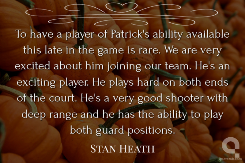 To have a player of Patrick's ability available this late in the game is rare. We are very excited about him joining our team. He's an exciting player. He plays hard on both ends of the court. He's a very good shooter with deep range and he has the ability to play both guard positions.