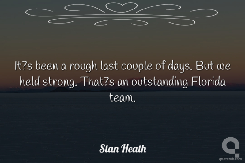 It?s been a rough last couple of days. But we held strong. That?s an outstanding Florida team.