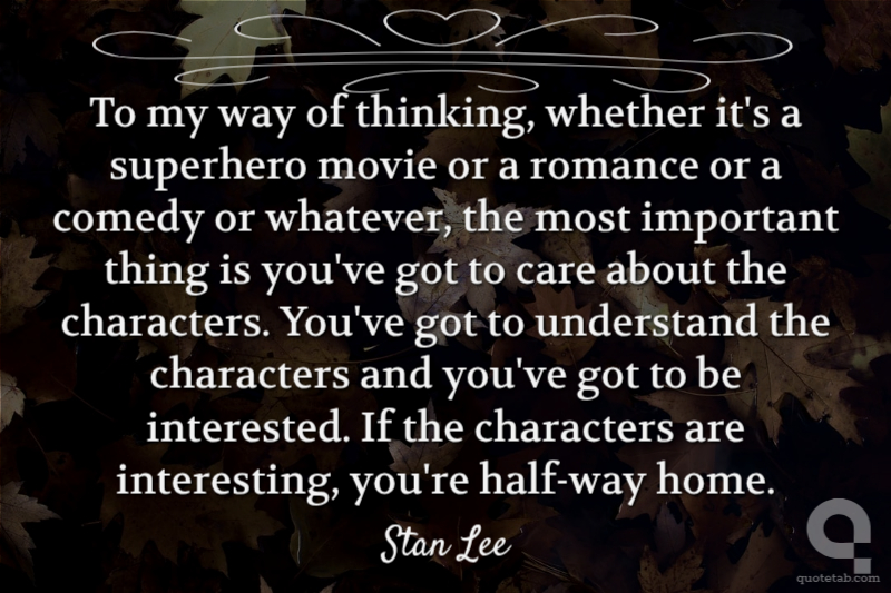 To my way of thinking, whether it's a superhero movie or a romance or a comedy or whatever, the most important thing is you've got to care about the characters. You've got to understand the characters and you've got to be interested. If the characters are interesting, you're half-way home.