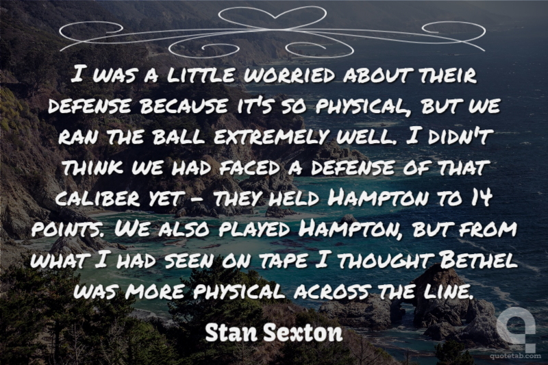 I was a little worried about their defense because it's so physical, but we ran the ball extremely well. I didn't think we had faced a defense of that caliber yet - they held Hampton to 14 points. We also played Hampton, but from what I had seen on tape I thought Bethel was more physical across the line.