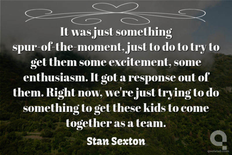 It was just something spur-of-the-moment, just to do to try to get them some excitement, some enthusiasm. It got a response out of them. Right now, we're just trying to do something to get these kids to come together as a team.