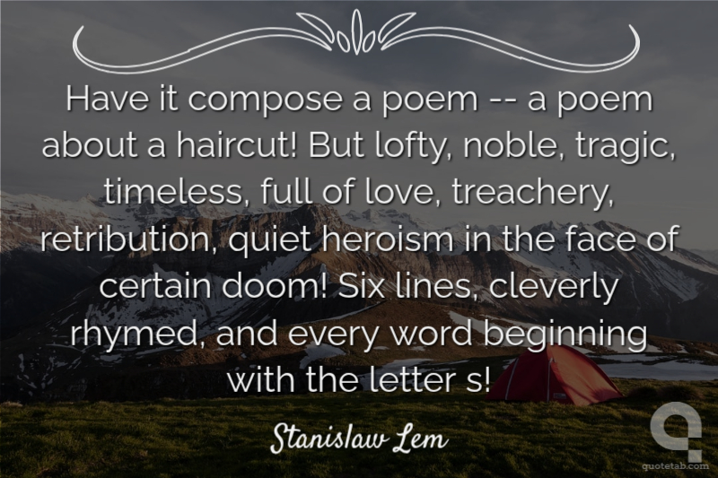Have it compose a poem -- a poem about a haircut! But lofty, noble, tragic, timeless, full of love, treachery, retribution, quiet heroism in the face of certain doom! Six lines, cleverly rhymed, and every word beginning with the letter s!