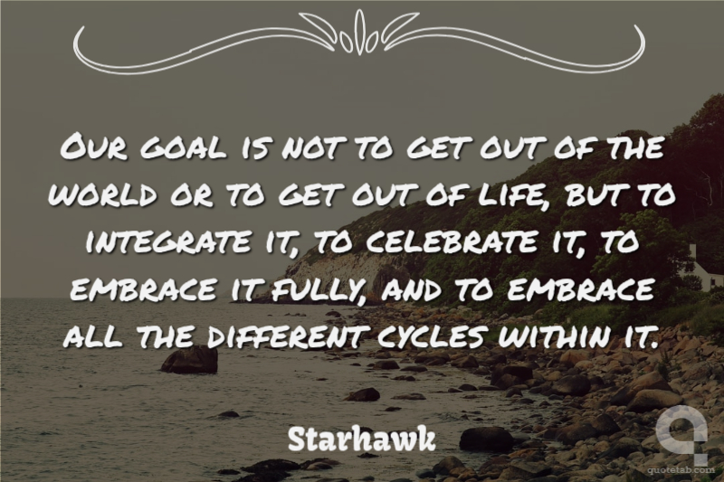 Our goal is not to get out of the world or to get out of life, but to integrate it, to celebrate it, to embrace it fully, and to embrace all the different cycles within it.
