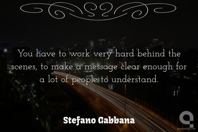 You have to work very hard behind the scenes, to make a message clear enough for a lot of people to understand.