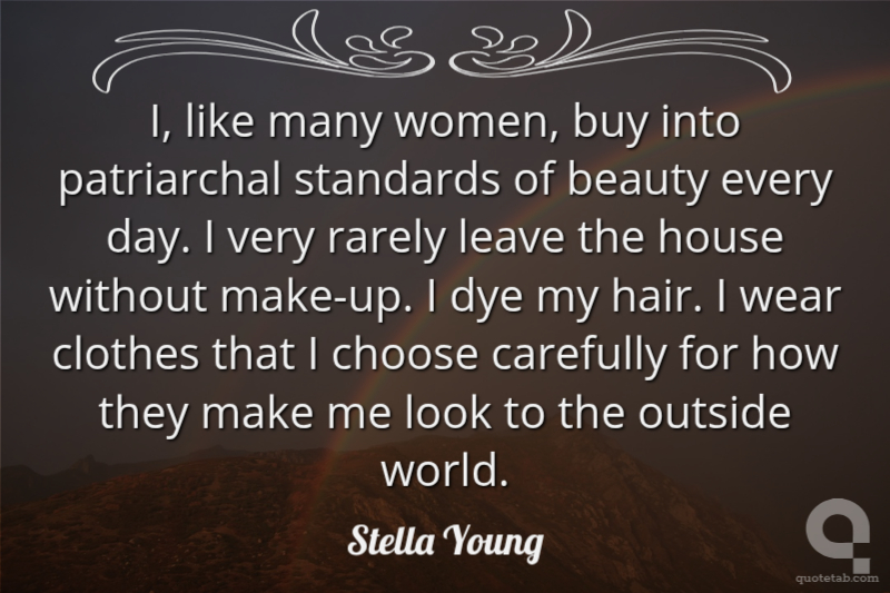 I, like many women, buy into patriarchal standards of beauty every day. I very rarely leave the house without make-up. I dye my hair. I wear clothes that I choose carefully for how they make me look to the outside world.
