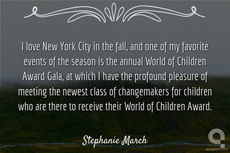 I love New York City in the fall, and one of my favorite events of the season is the annual World of Children Award Gala, at which I have the profound pleasure of meeting the newest class of changemakers for children who are there to receive their World of Children Award.