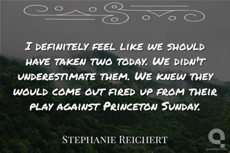 I definitely feel like we should have taken two today. We didn't underestimate them. We knew they would come out fired up from their play against Princeton Sunday.