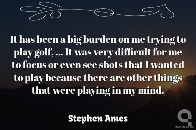 It has been a big burden on me trying to play golf, ... It was very difficult for me to focus or even see shots that I wanted to play because there are other things that were playing in my mind.