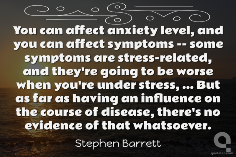 You can affect anxiety level, and you can affect symptoms -- some symptoms are stress-related, and they're going to be worse when you're under stress, ... But as far as having an influence on the course of disease, there's no evidence of that whatsoever.