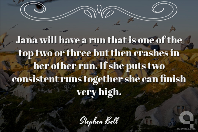 Jana will have a run that is one of the top two or three but then crashes in her other run. If she puts two consistent runs together she can finish very high.