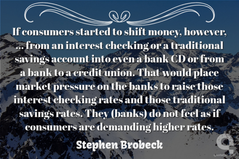If consumers started to shift money, however, ... from an interest checking or a traditional savings account into even a bank CD or from a bank to a credit union. That would place market pressure on the banks to raise those interest checking rates and those traditional savings rates. They (banks) do not feel as if consumers are demanding higher rates.